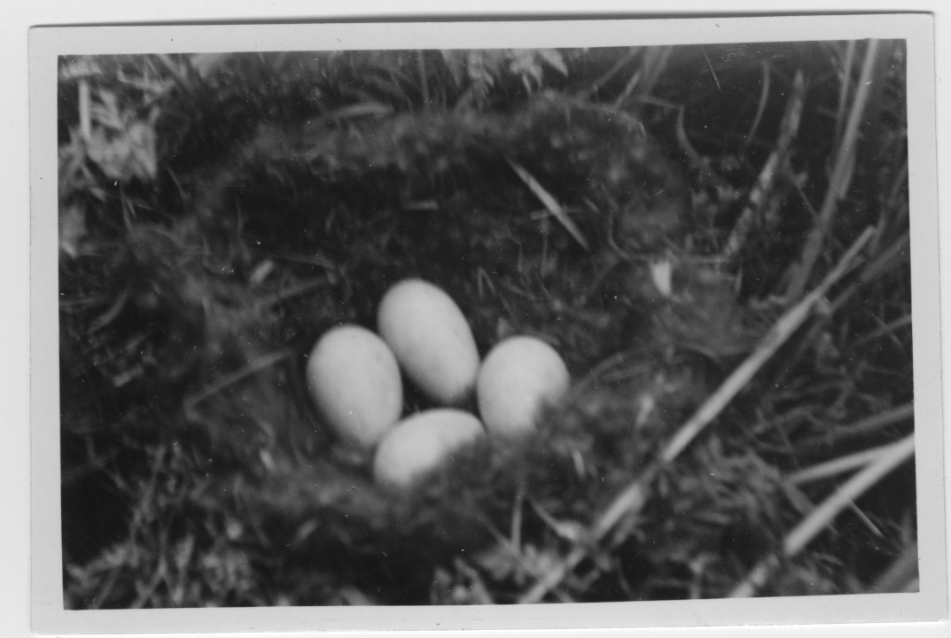 'Text enligt foto: ''Bo med 4 st ägg av svärta i det hundkexbuskage, där skrattmåsarna hade sin stora koloni. Fotot taget på 50 cm avstånd.'' :: :: Ingår i serie med fotonr. 4500:1-172.'