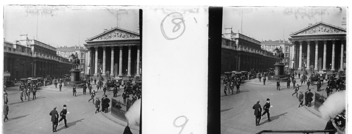 'Vy med Mansion palatset med staty föreställande häst med ryttare framför. På gatan gående människor och bilar. :: Enligt text till fotot: ''Mansion house palace.'' :: :: Ingår i serie med fotonr. 5245:1-20, se även hela serien med fotonr. 5237-5267.'