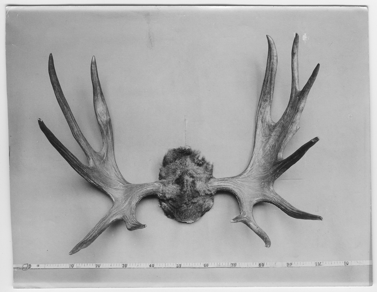 'Älghorn av cervin typ. 95 cm mellan spetsarna. :: :: Bilden med i Göteborgs Naturhistoriska museums Årstryck 1908 s.18'