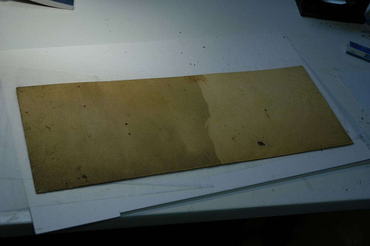 'Platta där torkat fiskskinn varit uppspänt. :: :: Ingår i serie med fotonr. 7005:1-8 med foton av fiskar bevarade genom torkning, framtagna för rengöring av konservator.'