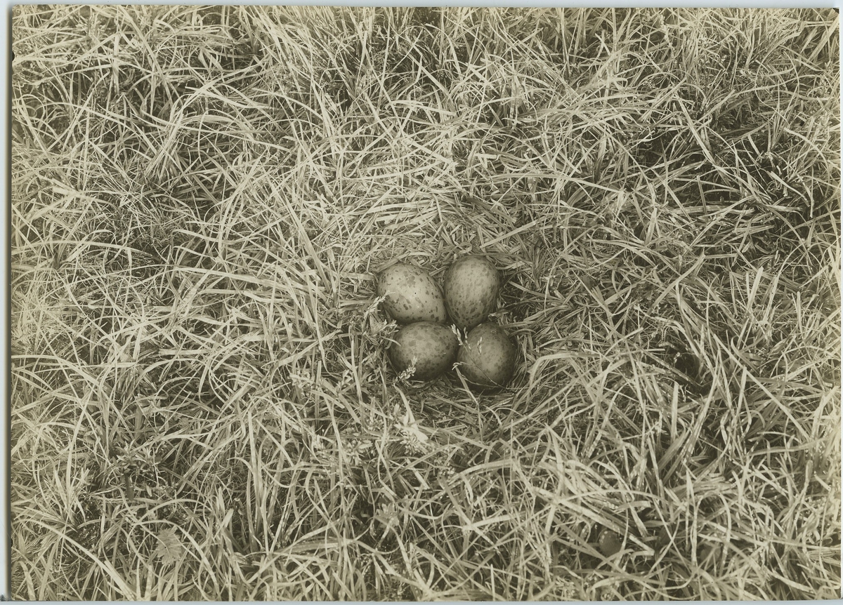 'Storspov, bo med 4 ägg på marken. Närbild. :: :: Se även fotonr. 88.'