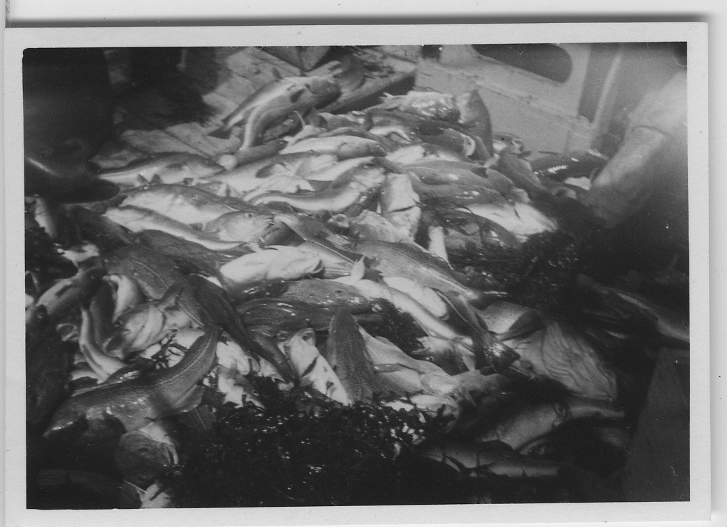 'Från professor Leonard Axel Jägerskiölds expedition i Kattegatt med båten ''Skagerrak'': :: :: Fångsten utstjälpt på akterdäck. :: :: Ingår i serie med fotonr. 3866-3877.'