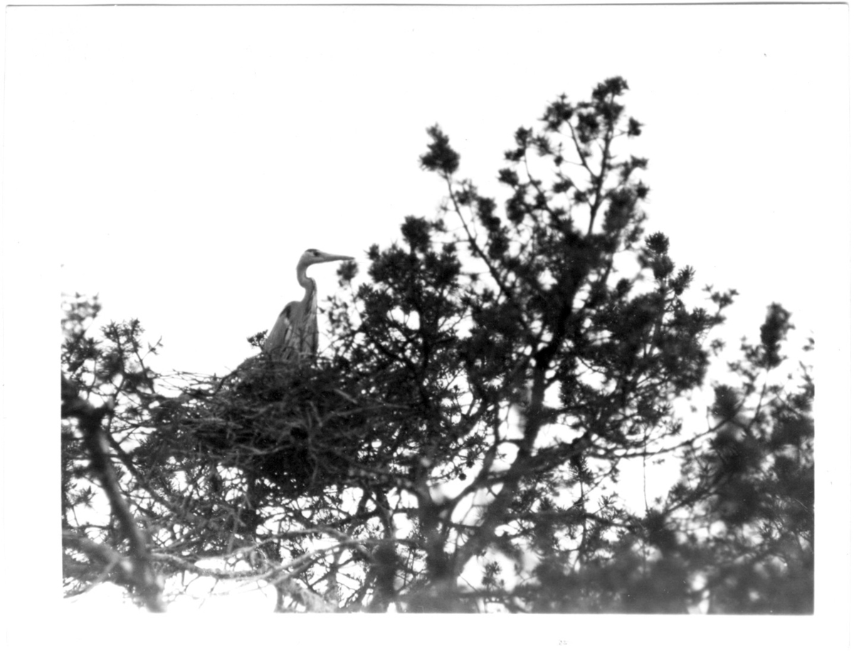 'Häger på boet i trädkrona, i en tall. :: :: Ingår i fotonr. 6995:1-51, dessa sitter i ett fotoalbum med tillhörande beskrivningar på norska.'