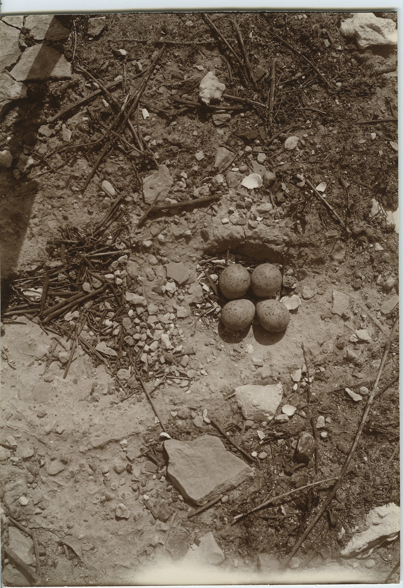 Mindre strandpipare, bo direkt på mark, 4 st ägg. Vid boet i grus och småsten finns bitar av musselskal.
