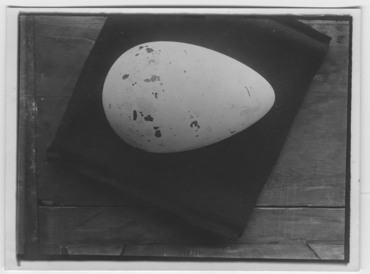 'Ägg av garfågel efter en avgjutntning i Naturhistoriska museet. Ägget 1/3 av naturlig storlek. :: :: :: Ingår i serie med fotonr. 2984-3010, foton och teckningar på dront och garfågel bl.a.'