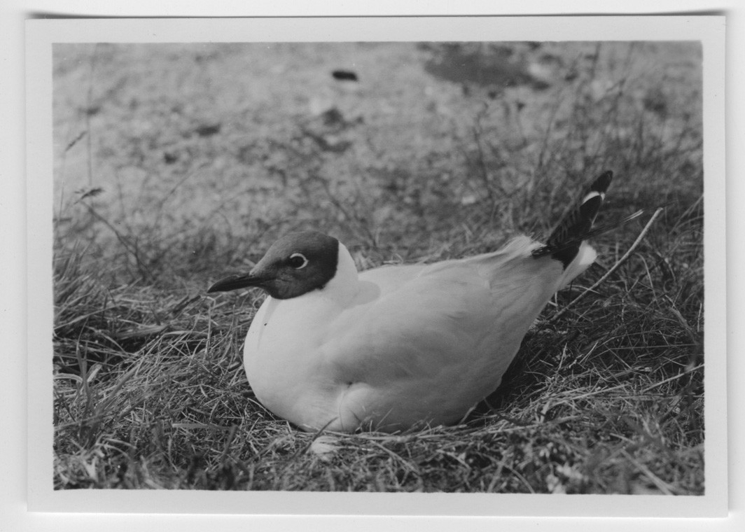 'Skrattmås, liggande på boet, i närbild. :: :: Ingår i serie med fotonr. 3478-3480.'