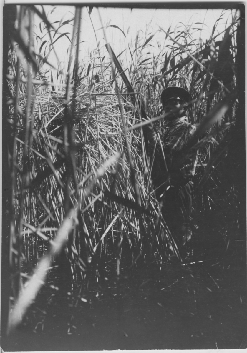 'Ägretthägerbo. På baksidan av fotot står: ''Silferhägerbo. Mansfiguren utvisar boets höjd ovan vattenytan''. :: :: Se fotonr. 159-166.'