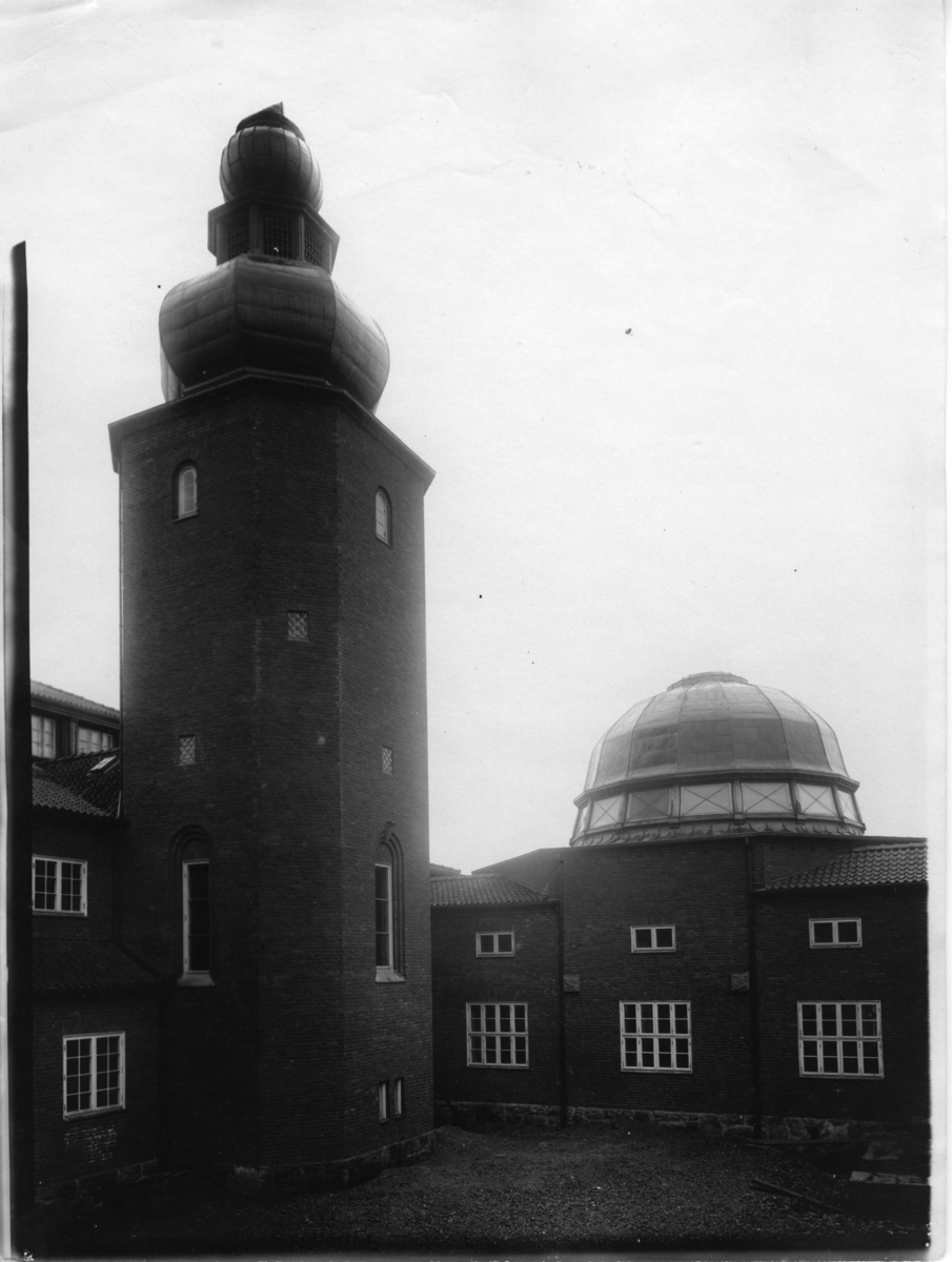'Naturhistoriska museet i Slottsskogen: parti av innergården med tornet. :: Trädgården ej anlagd.'