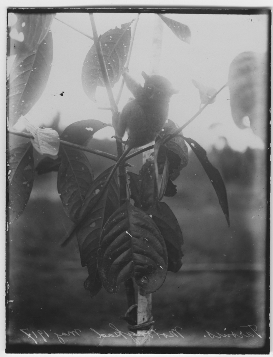 'Spökdjur i gren. Se även fotonr. 5130:3, samma motiv. :: :: Spegelvänd text längs nedre kanten. Ingår i serie med fotonr. 1149-1154, samma motiv som fotonr. 1151.'