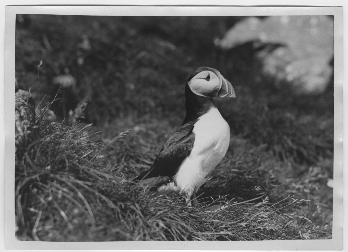 'Lunnefågel sedd helt från sidan, närbild. :: :: Ingår i serie med fotonr. 2462-2487.'