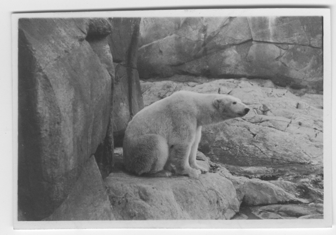 'Isbörjan, sittande, sedd från sidan, på berghäll. :: :: Ingår i serie med fotonr. 4161-4163.'