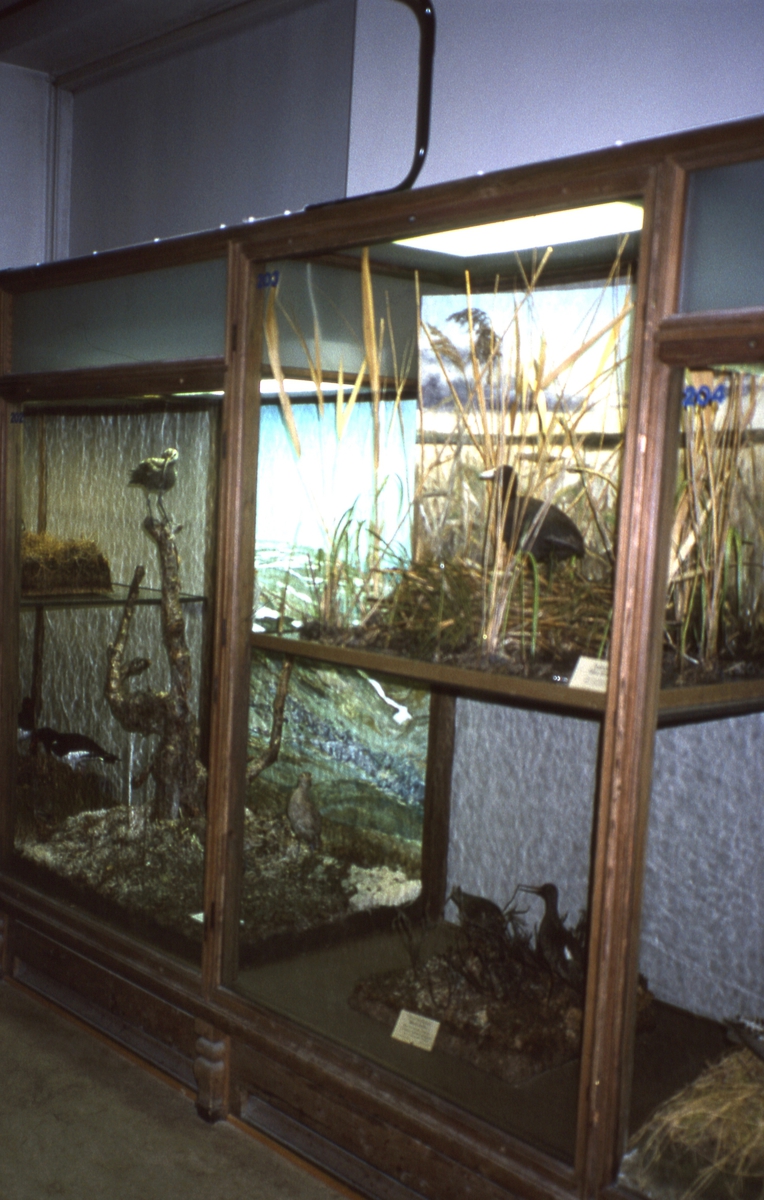 'Montrarna i fågelgången fotograferade före restaurering. :: Svenska fåglar. Biologiska grupper. Rallfåglar. :: :: Ingår i serie med fotonr. 6939:1-54.'