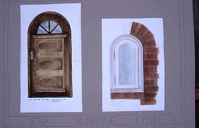 'Foton, teckningar och modeller av studenter från Chalmers Tekniska högskola, Institutionen för Arkitekturhistoria, Göteborg. Foton och teckningar av detaljer från Naturhistoriska museets byggader, byggnadsvård. :: :: Ingår i serie med fotonr. 6929:1-21.eckning av dörr.'