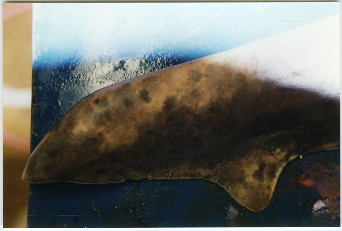 'Detaljbild av den långa stjärtfenans yttersta del. :: :: Ingår i serie med fotonr. 7100:1-13.'
