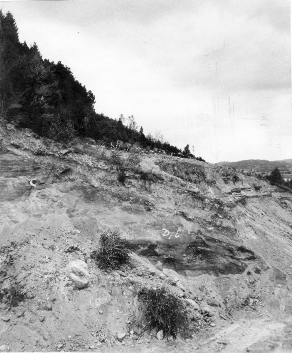 'Bildtext: ''Passagens norra vägg.'' Vy över moränen. :: :: Ingår i serie med fotonr. 7060:1-20 med bilder från Dösebacka- och/eller Ellesbomoränen.'