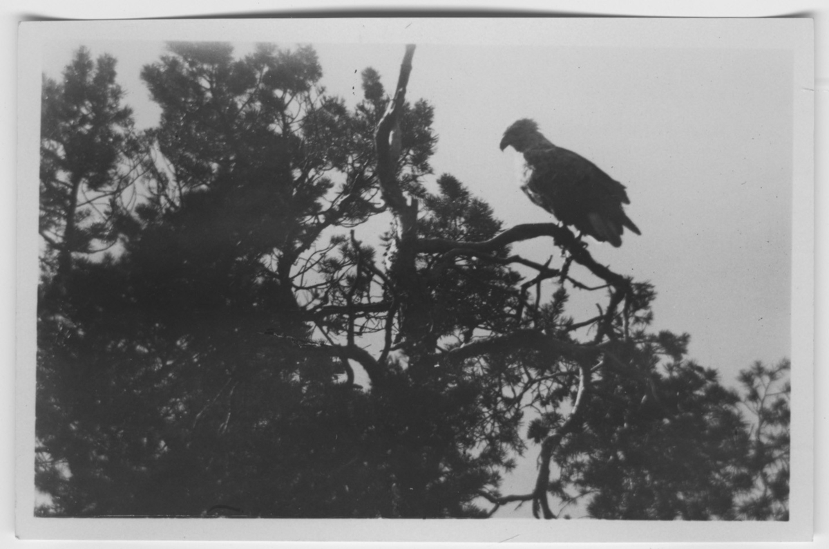 'Havsörn, gammal, sittande på tallgren. :: :: Ingår i serie med fotonr. 1771-1837. Se även fotonr. 3151-3200.'