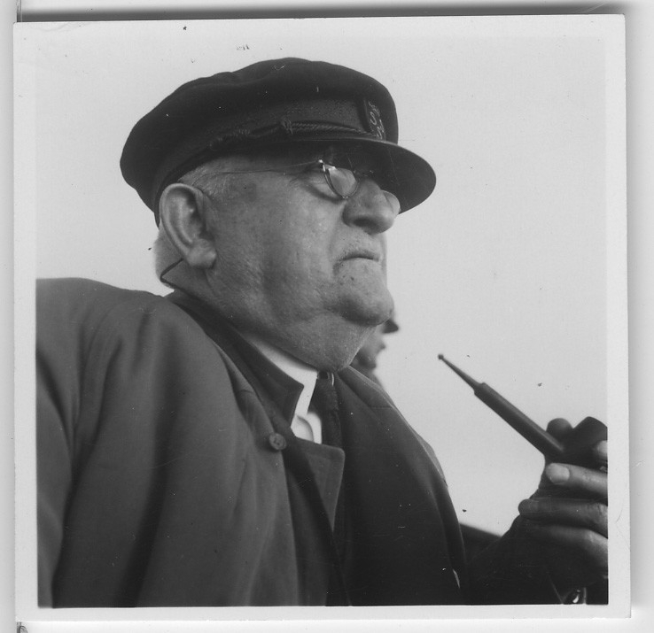 'Från ''Skageraks''-expeditionen till Hebriderna och Shetland: :: :: Närbild på Leonrad Axel Jägerskiöld med pipa, i Lerwick. :: :: Ingår i serie med fotonr. 4113:1-82.'