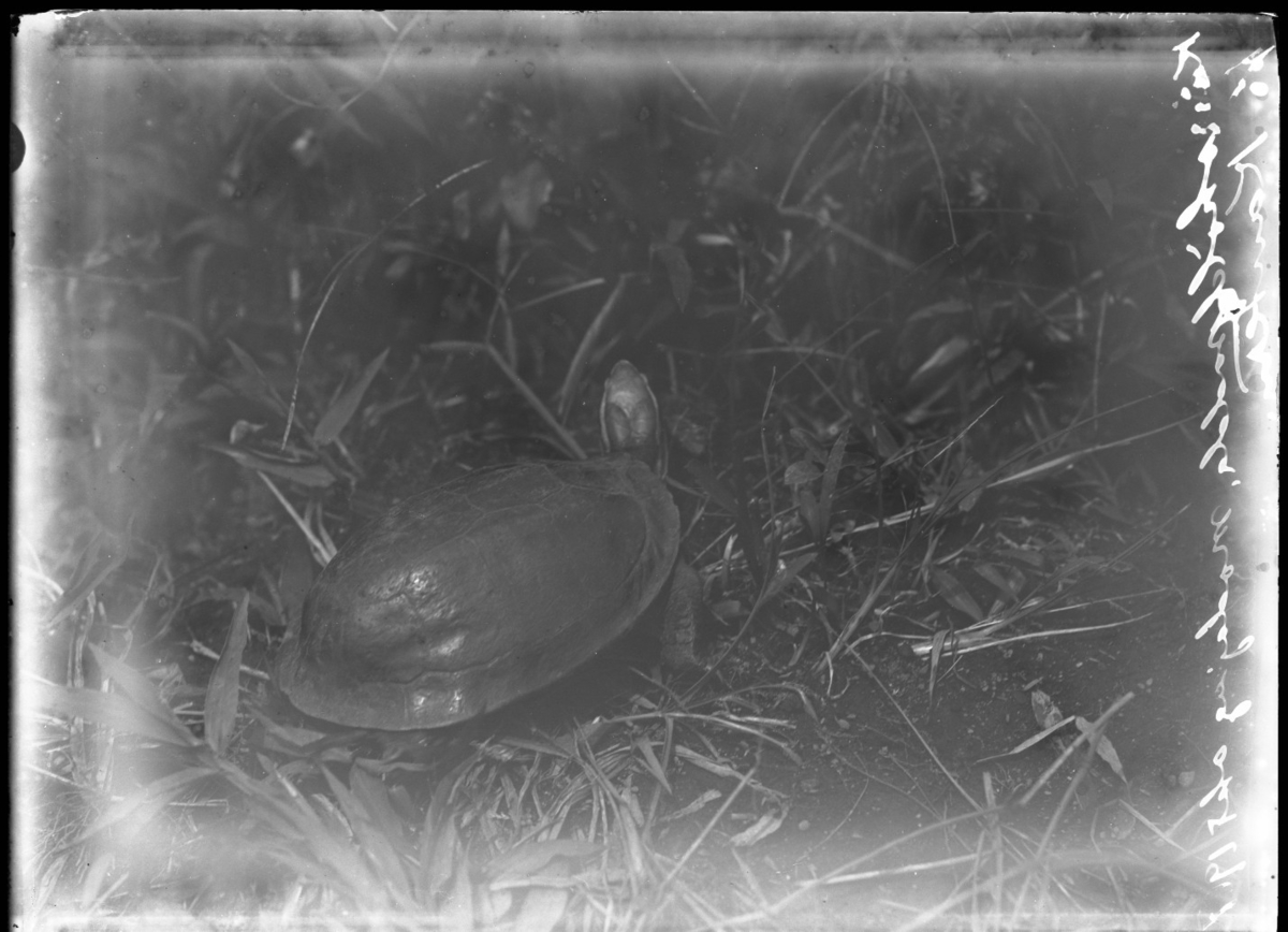 'Kärrsköldpadda på marken, gräsvegetation. :: :: Ingår i serie med fotonr. 5131:1-2.'