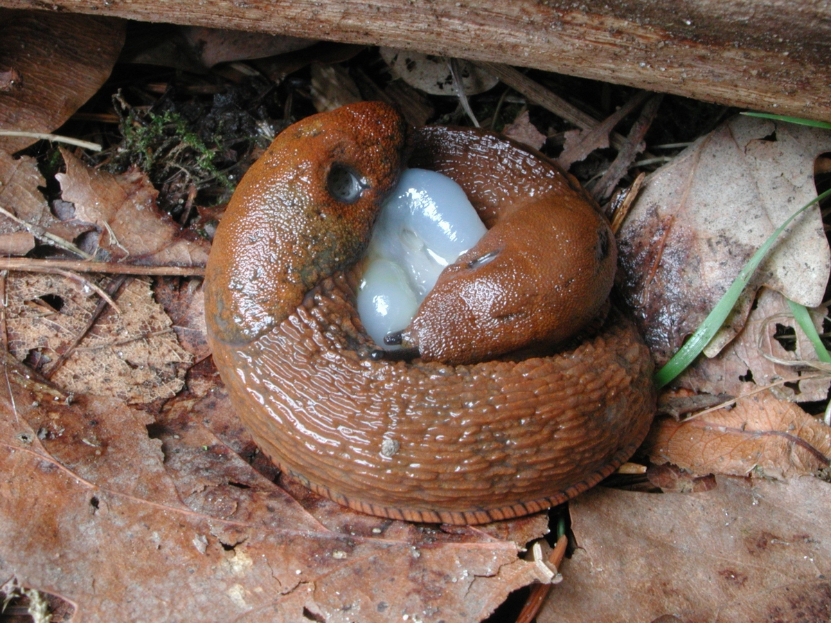 Spanska skogssniglar som parar sig. (Mördarsnigel)