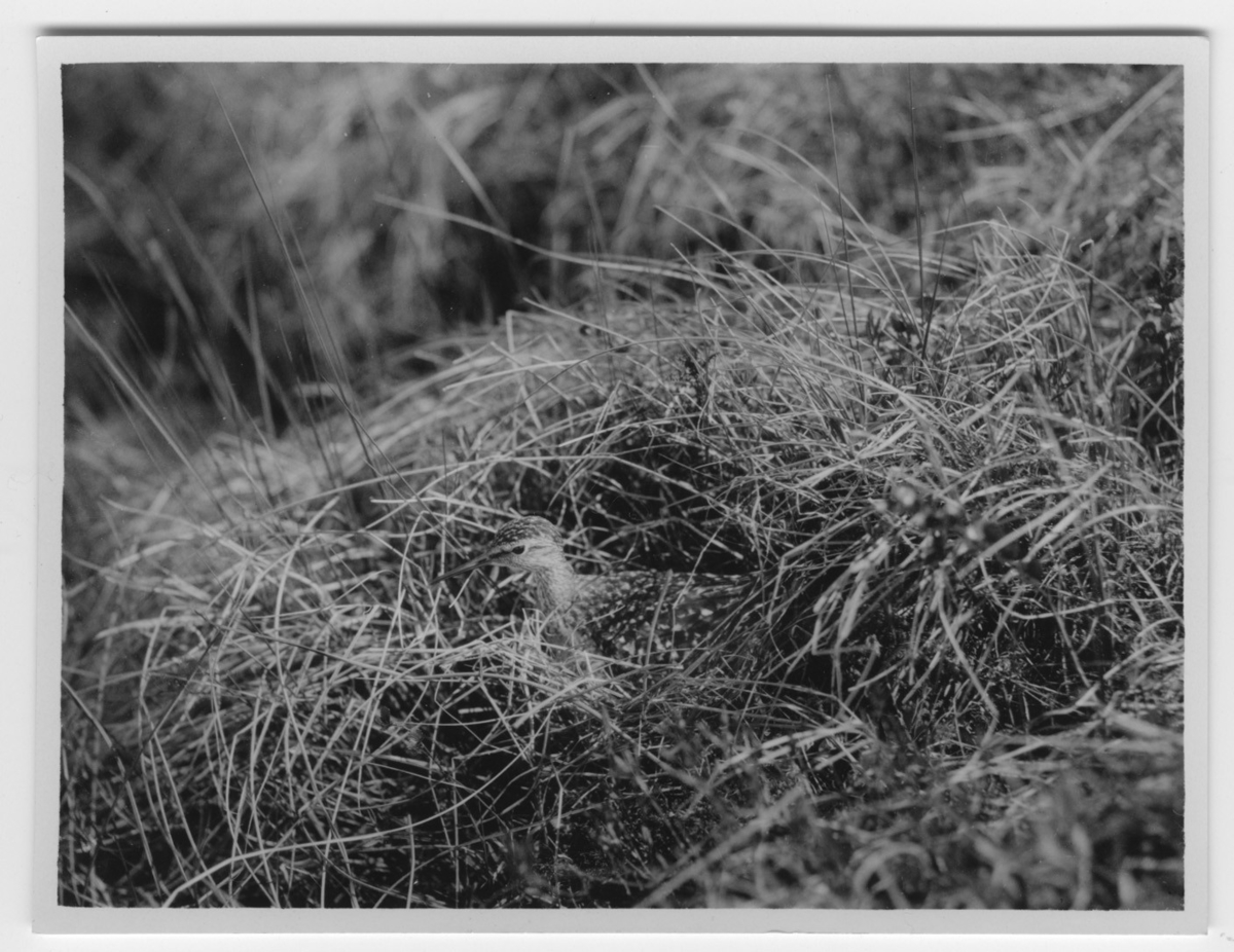 'Grönbena på boet, i högt gräs. Sedd från sidan, närbild. :: :: Ingår i serie med fotonr. 2116- 2160.'