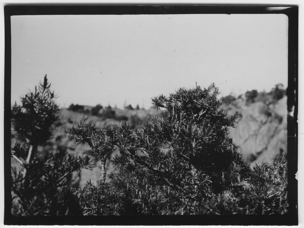 'Närbild på tallkrona angripen av tallskottvecklare. Text på baksidan: ''Tallkronor deformerade av Tortrix buoliana.'' :: :: Ingår i serie med fotonr. 2347-2399.'