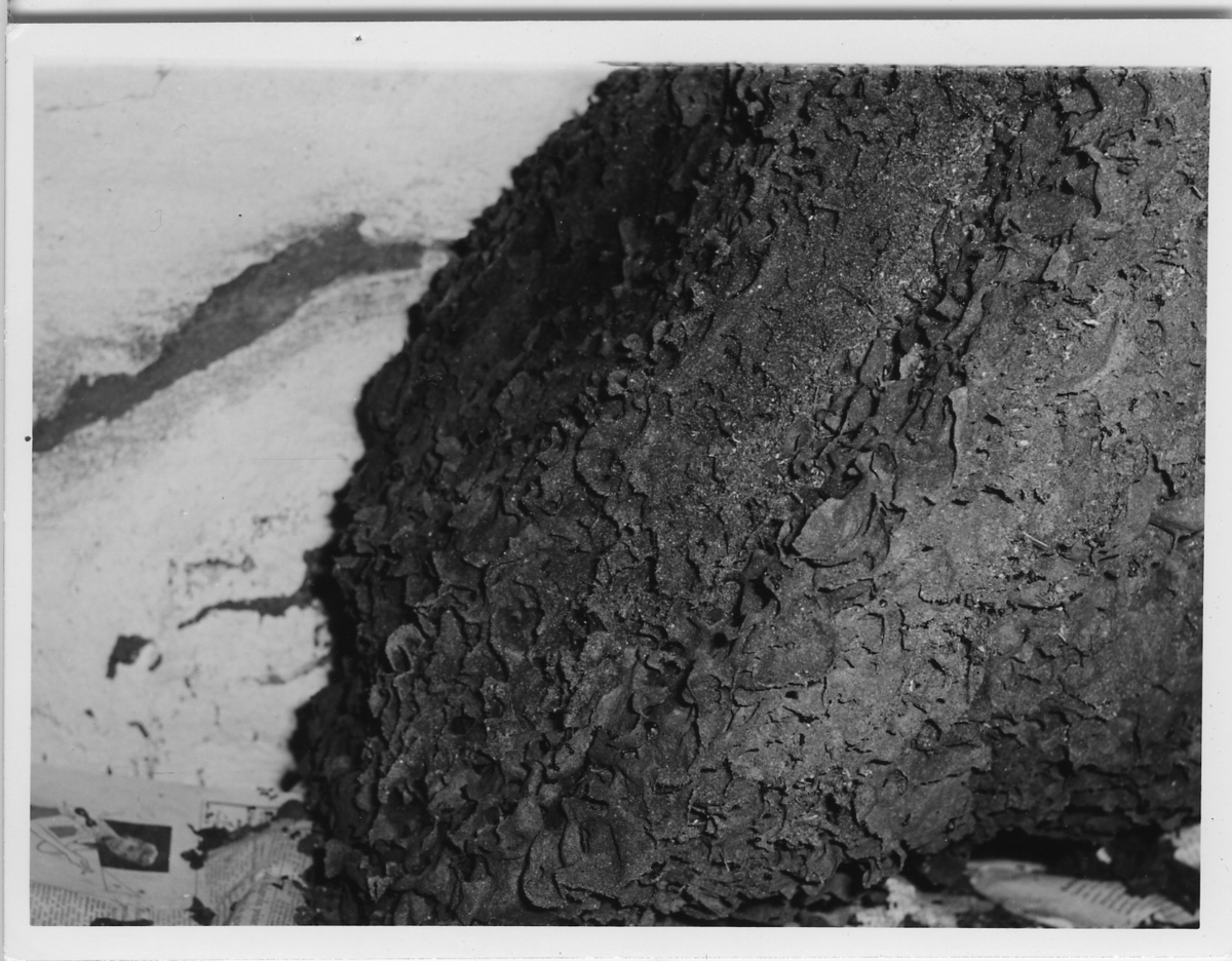 'Foton av jättebo av blanksvart trädmyra, närbild på boet. Boet är ett pergamentsbo med storleken, 55 cm högt, bredd 55 cm, längd i horisontalplan 63 cm och vikt 6 kg. :: :: Serie fotonr 4716-4729, se även fotonr. 5086:1-3.'