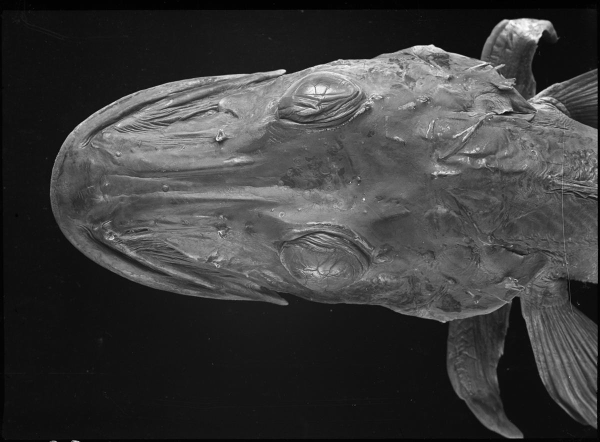 'Kranium av fisk sett ovanifrån, gädda? :: :: Ingår i serie med fotonr. 5113:1-18.'