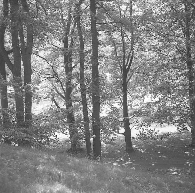 'Ekbacken och en bild på stora blocken utanför entrén. :: :: Vy över ekbacken.'