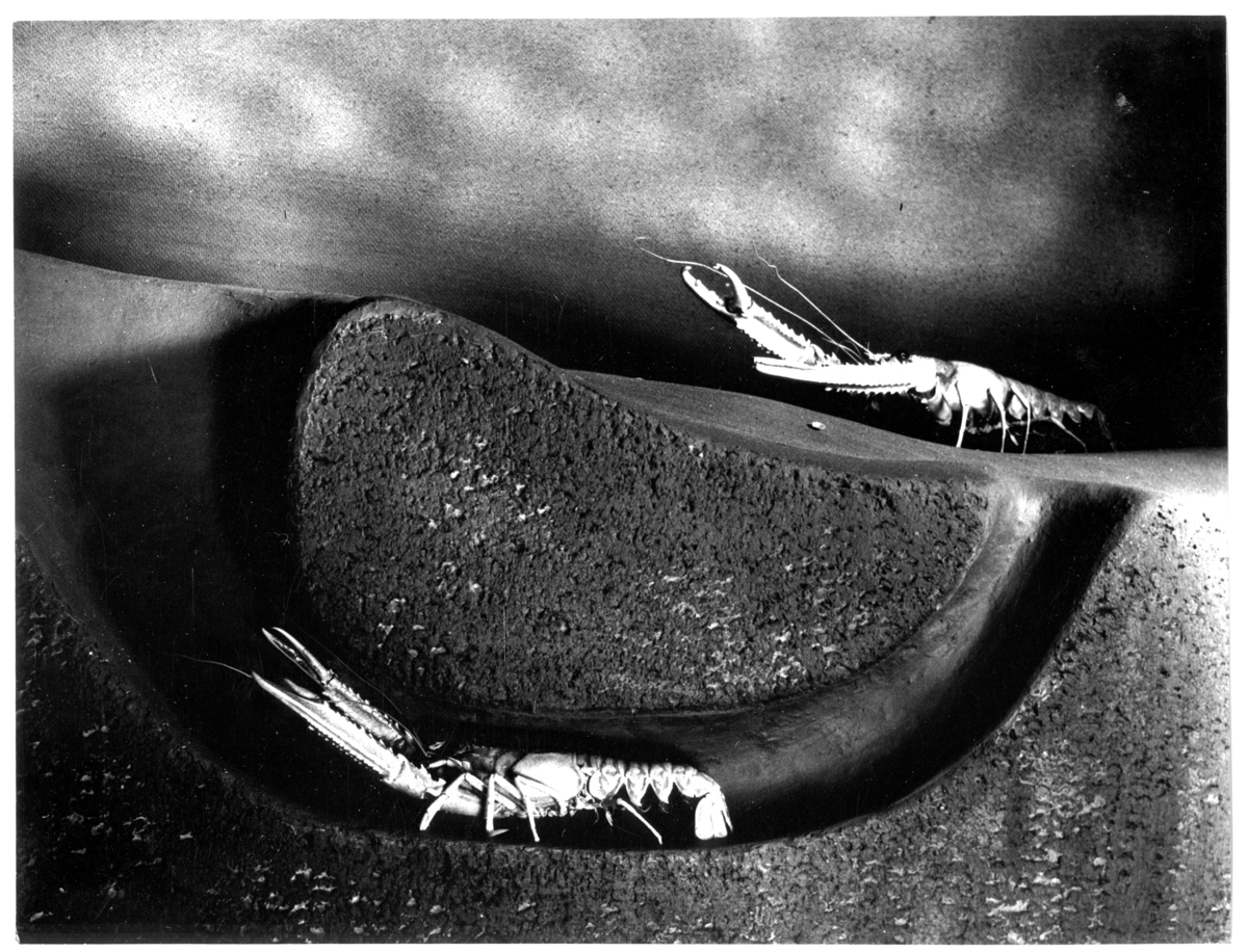 'Bilder från Göteborgs Naturhistoriska museum tagna som övningsuppgift av fotografer på Göteborgs Stads yrkesskolor: :: :: 2 st havskräftor varav 1 st i gång. I monter nr. 92 (år 2007). :: :: Ingår i serie med fotonr. 6953:1-53.'