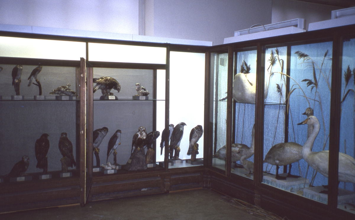 'Fågelgången på Göteborgs Naturhistoriska museum: :: Svenska fåglar. Svanar. Rovfåglar. :: :: Ingår i serie med fotonr. 1-27'