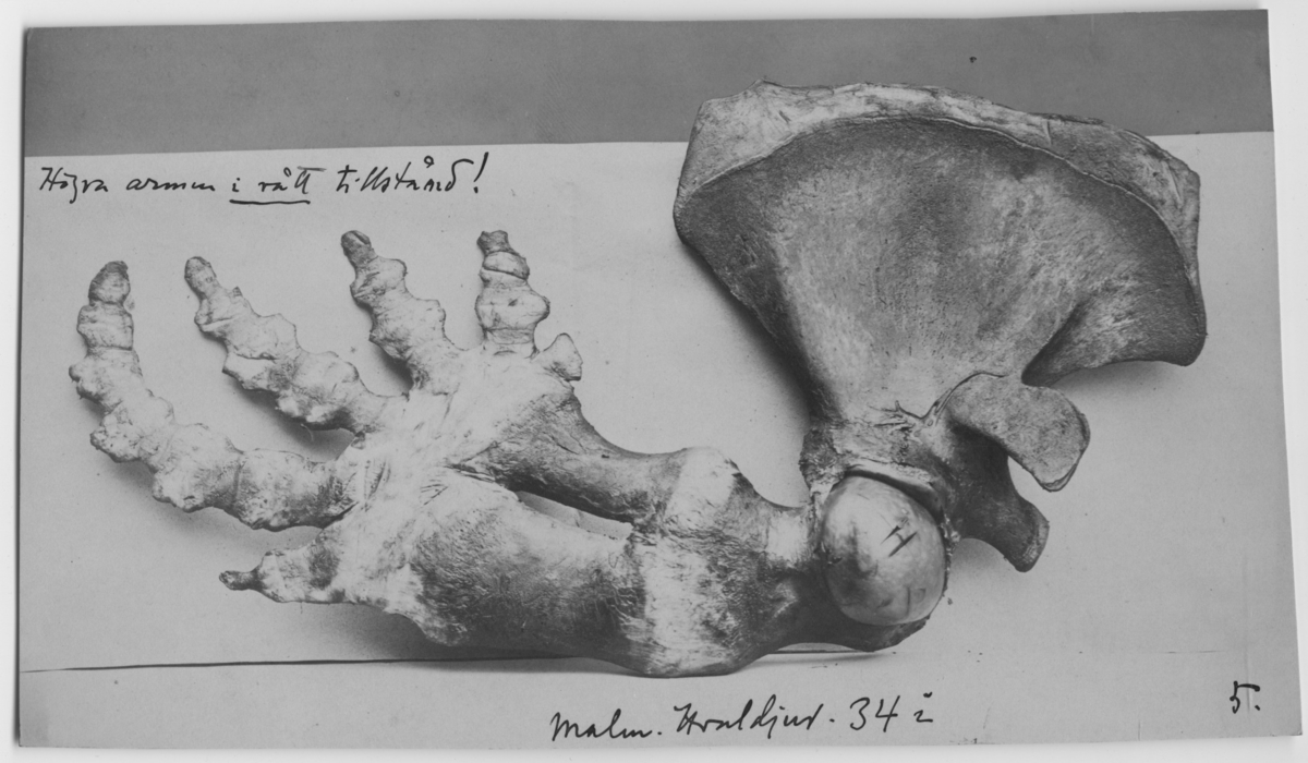 '''Högra armen'' av späckhuggare. :: :: Ingår i fotonr. 6992:1-3 med foton av späckhuggare av August Wilhelm Malm 1868 till ''Hvaldjur av A.W. Malm'