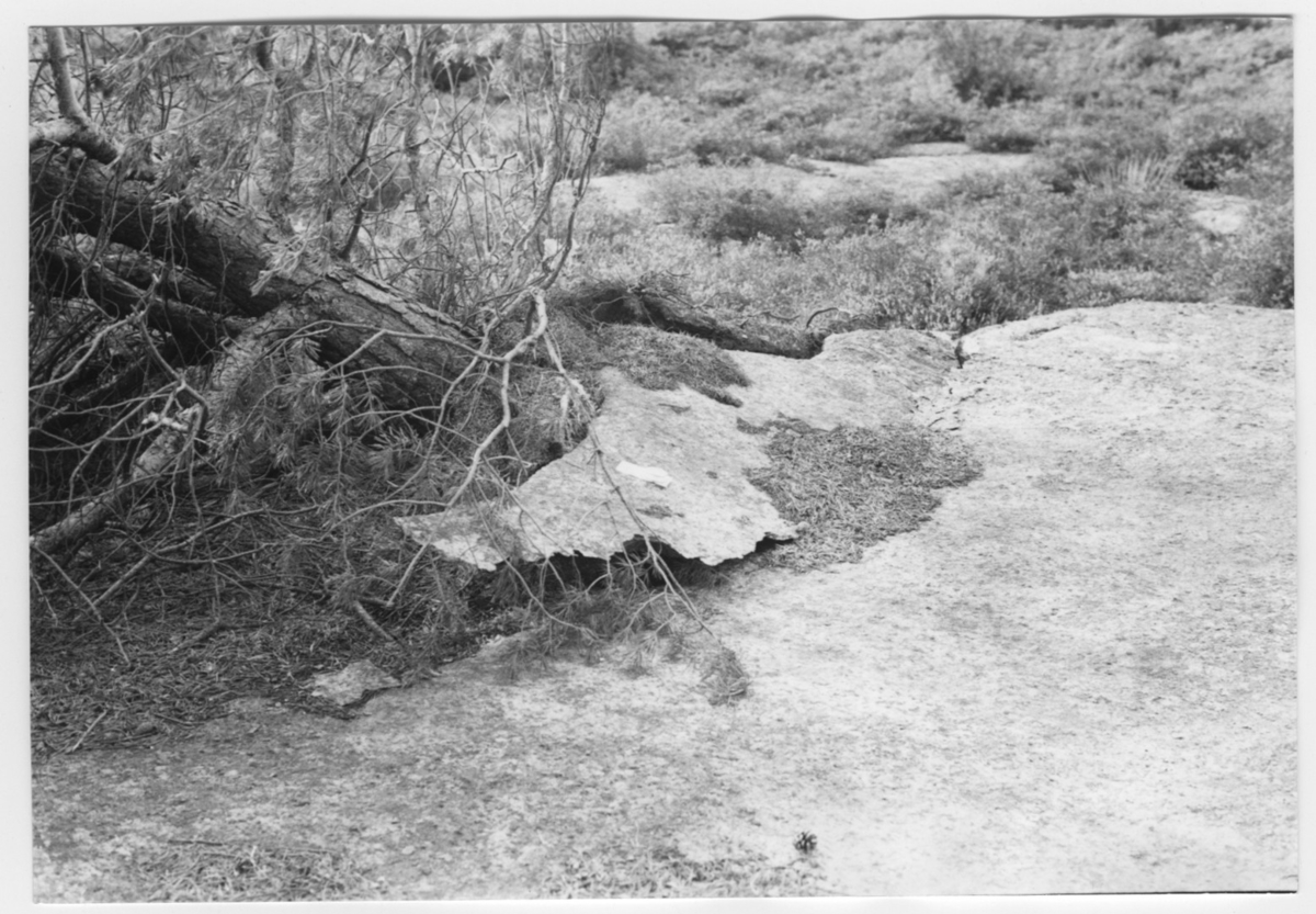 'Bildtext: ''Rotsprängning.'' :: :: Ingår i serie med fotonr. 6970:1-1125, dokumentation av Hisingens naturgeografi, visande landskapsformerna i stora drag och gjord inför exploateringen av området. Platserna för fotograferingen finns utsatta på karta i skala 1:4000 som finns på Göteborgs Naturhistoriska musem. Fotoriktningen mättes med kompass i gammalgrader.'