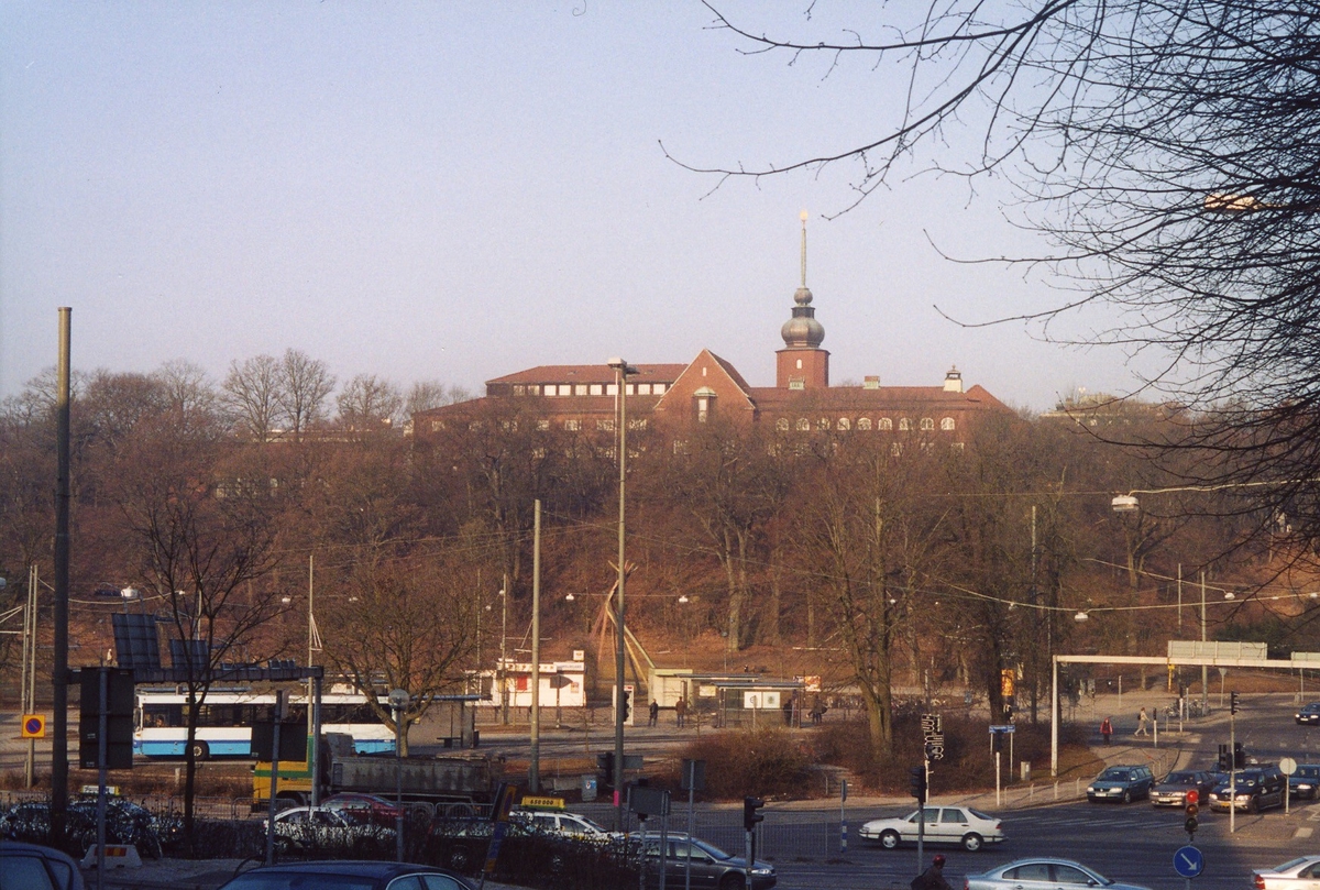 'Exteriörbild av Göteborgs Naturhistoriska Museum. Byggnaden fotograferad från Linnéplatsen med väg, bilar och buss emellan Linnéplatsen och kameran. :: :: Ingår i serie med fotonr. 6065:1-12 med vyer med Göteborgs Naturhistoriska museum.'