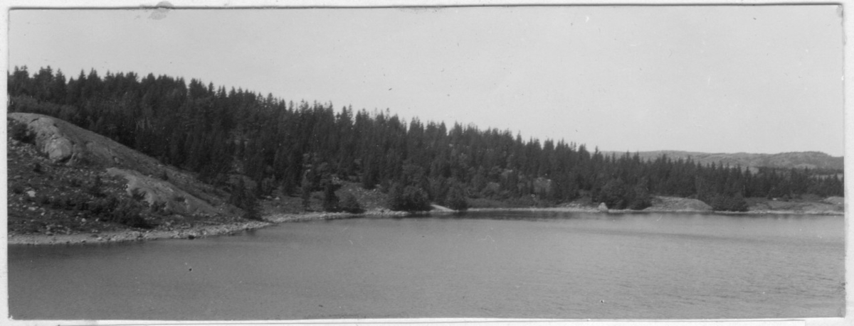 'Bildtext: ''Spontant granbestånd (spontana grangränsen).'' Vy med granvegetation på sluttning ner mot havet. :: :: Fotonr. 7046:234-275 indelade som ''Naturskogsbestånd i Göteborgs län och Bohus län''. Ingår i serie med fotonr. 7046:1-383, 7047:1-33 och 7048:1-67 med bilder från Länsjägmästare John Lindners bildarkiv.'