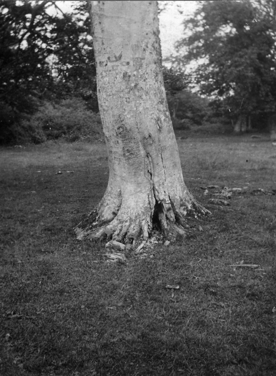 'Solitärt träd, nedre delen av stammen synlig. :: :: Ingår i serie med fotonr. 862-871.'