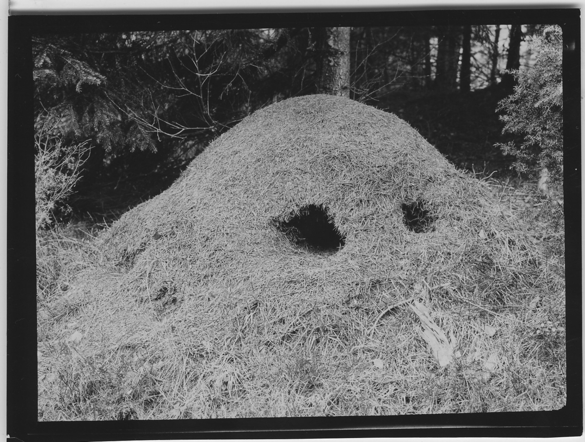 'Myrstack med hål av gröngöling. :: :: Ingår i serie med fotonr. 2347-2399. Se fotonr. 704, samma motiv.'
