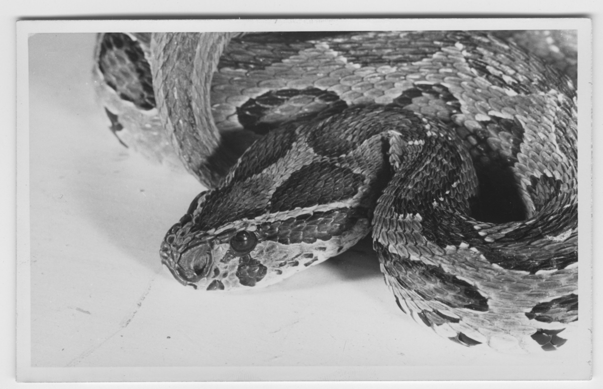 'Indisk kedjehuggorm ''Daboia''. Närbild på huvud. :: :: Ingår i serie med fotonr. 4653-4657, 4659-4672.'