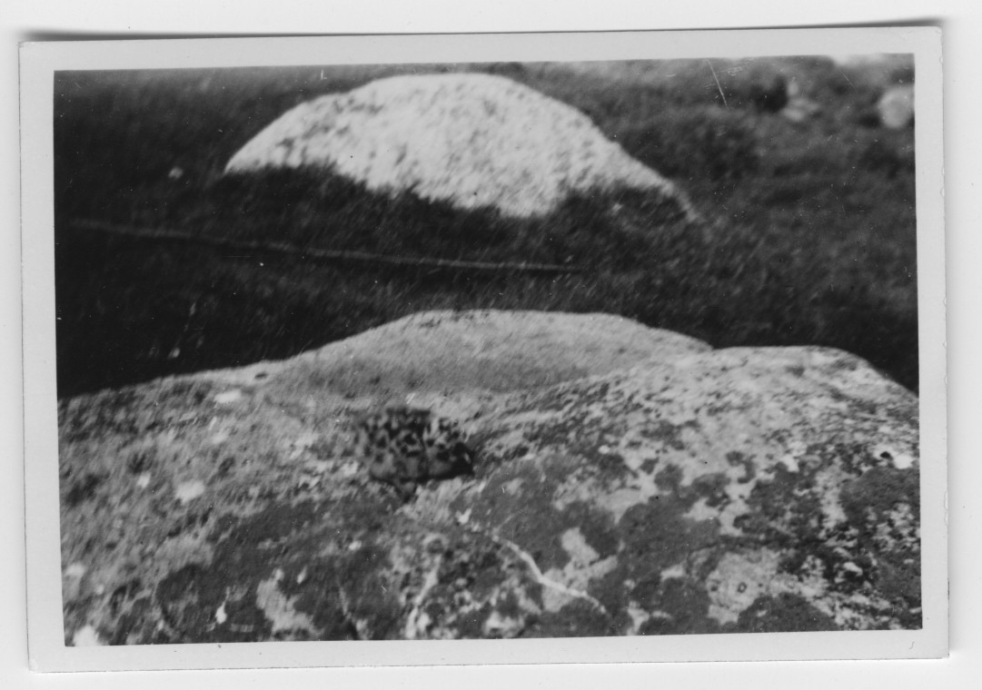 'Text enligt foto: ''1 st dagsgammal unge av fiskmås i en skreva i stenen på en holme väster om fågelstationen.'' :: :: Ingår i serie med fotonr. 4500:1-172.'