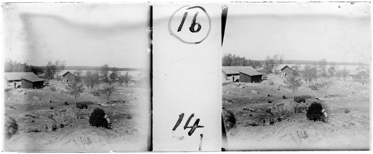 'Bildtext: ''Båtsvik back view.'' (Vy från baksidan av Båtsvik) :: Vy med hus, stuga med omgivande berghällar och inhägnat område med trähägnad. Vy med havet i bakgrunden. :: :: Ingår i serie med fotonr. 5250:1-21, se även hela serien med fotonr. 5237-5267.'