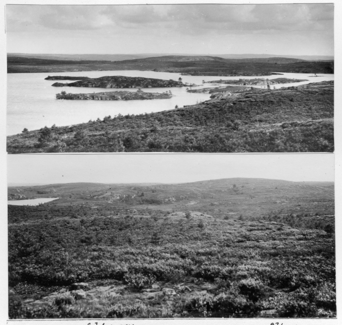 'Vy över sjö med holmar och öppen hedmark. :: :: Fotonr. 7046:1-84 indelade som ''Landskapsbilder från Göteborgs- och Bohus län.'' Ingår i serie med fotonr. 7046:1-383, 7047:1-33 och 7048:1-67 med bilder från Länsjägmästare John Lindners bildarkiv.'