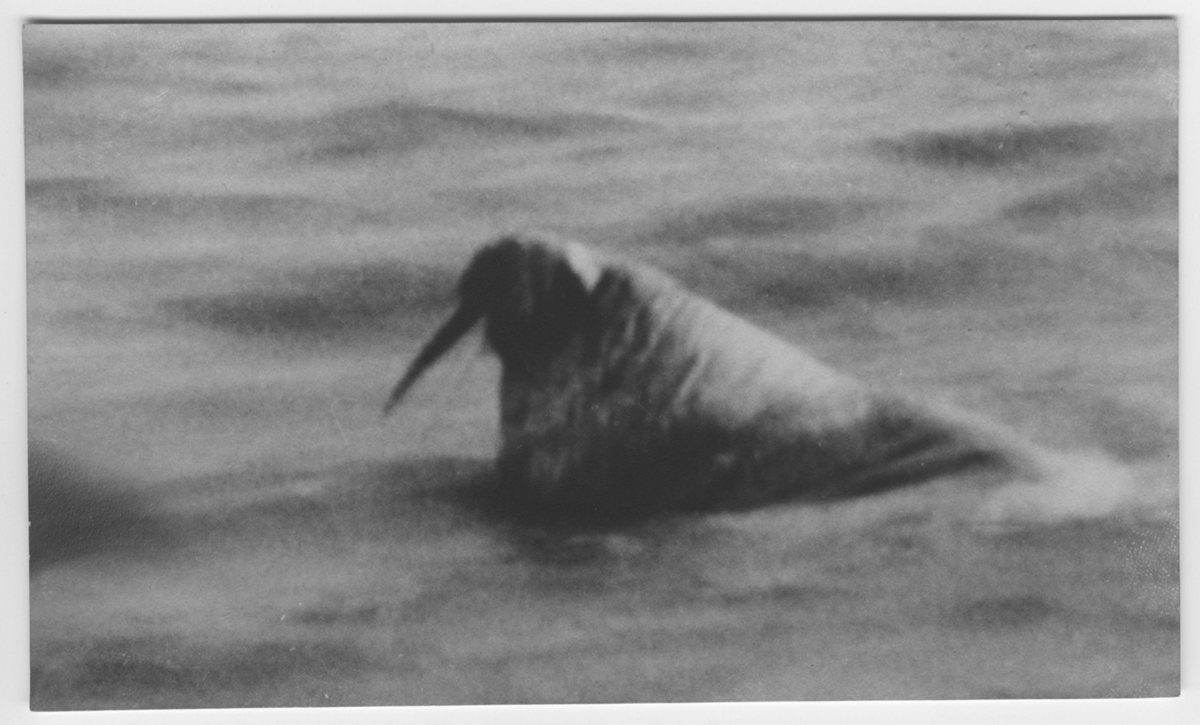 'Valross, hane ad. Huvudet sticker upp. Coll.an. 5026-5034 :: Möjligen delförstoring av fotonr. 1090:1. :: Se fotonr. 1042, 1090, 1155, 1156, 1248, 1249, 1250, 1405, 1406, 1407, 3038, 3372 :: Se även fotonr. 1090:1.'