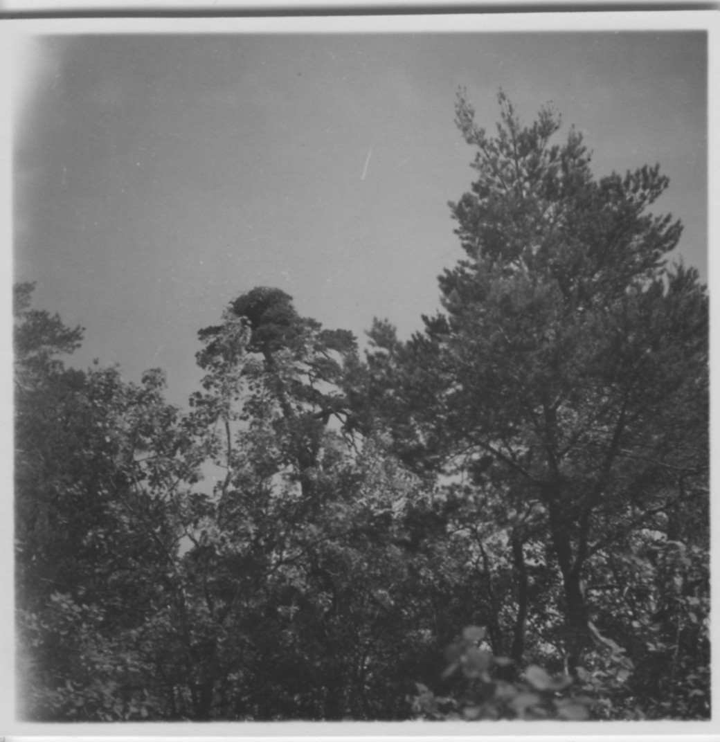 'Biologiska föreningens utfärd till Läckö och Lilla Ekens skärgård: :: :: Fiskgjuse, bo i tall. Vy med talltoppar. :: :: Se fotonr. 3242-3254, 3255, 3256-3259, 3260-3285 samt 3889-3894.'