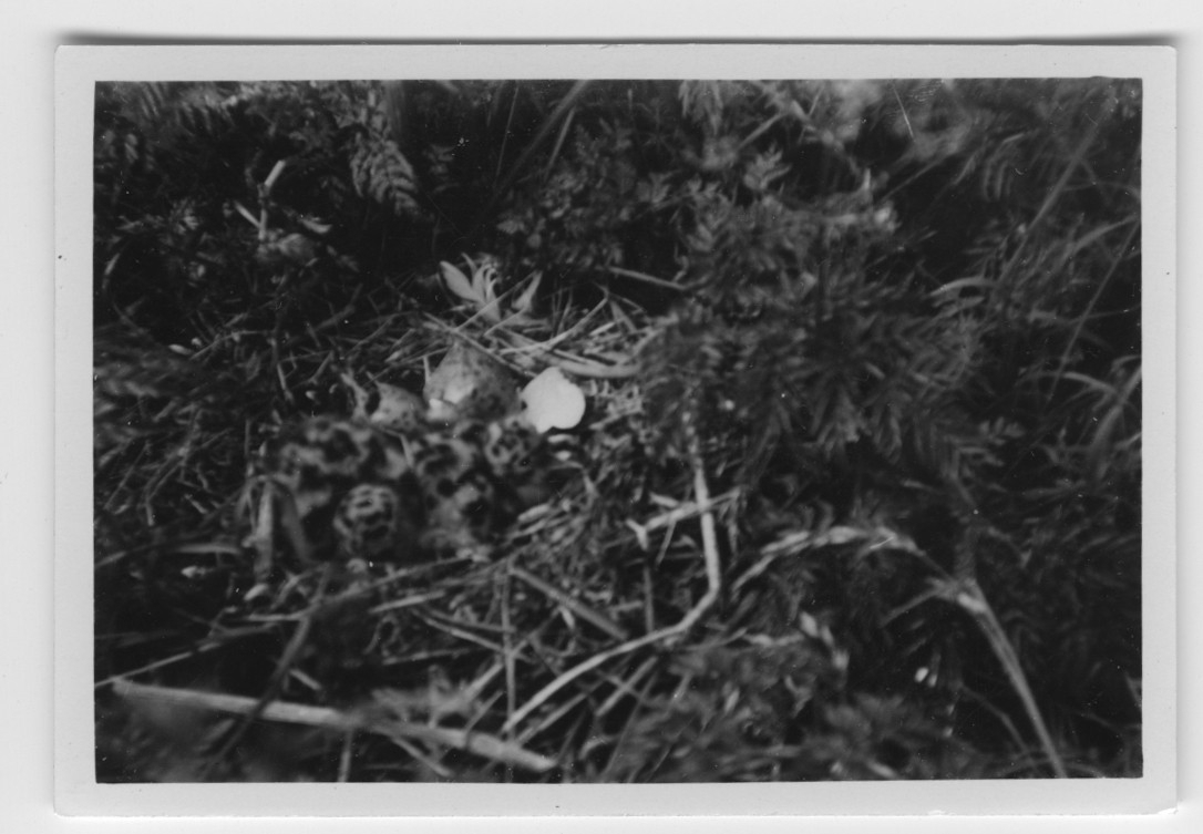 'Text enligt foto: ''2 st ungar av fisktärnan av vilka den till höger nyligen kläckts, ägggskal syns bredvid den samt ett kläckfärdigt ägg. Fotot taget på 55 cm avstånd.'' :: :: Ingår i serie med fotonr. 4500:1-172.'