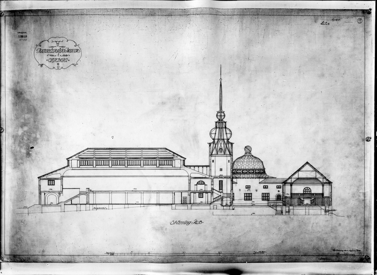 'Exteriör: ''Skärning A:B.'' :: :: Ingår i serie med fotonr. 6067:1-7 med planritningar, såväl exteriör som interiör, inför nybyggandet av Naturhistoriska Museet i Göteborg.'
