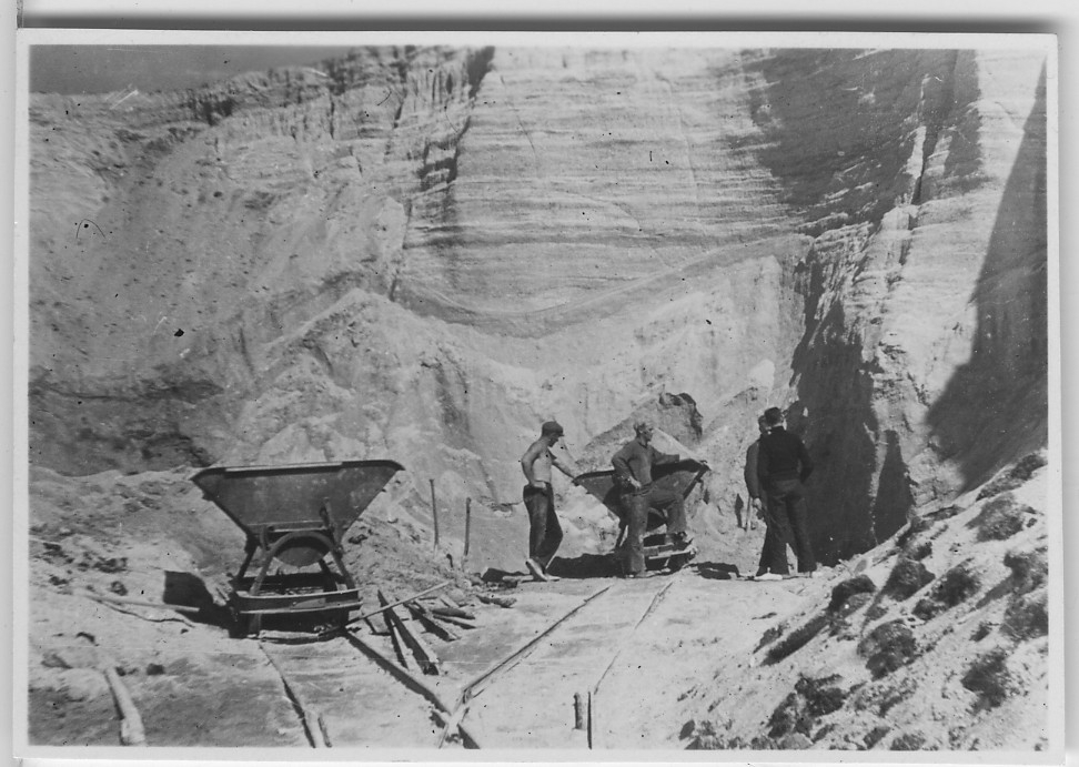 'Snäckbanken på Otterön, maskinerr, räls och 4 arbetare. :: :: Ingår i serie 3438-3440, se även 3463-3464 samt 3365.'