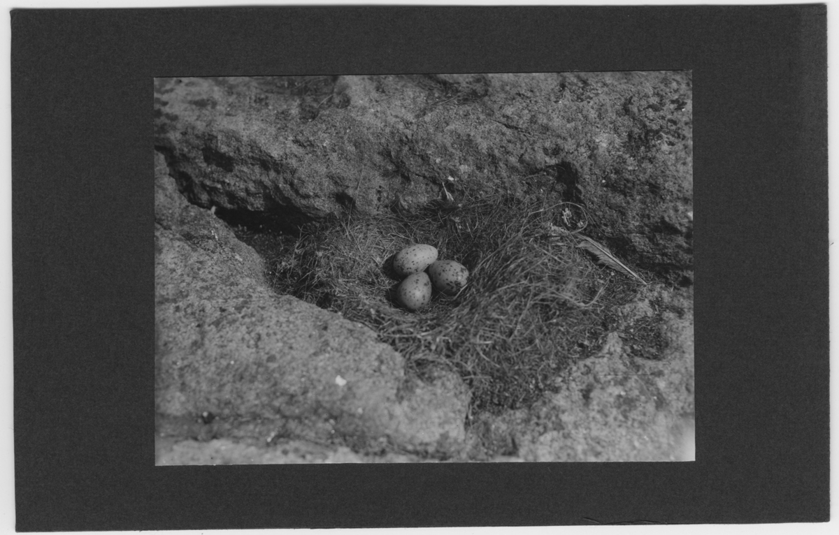 'Havstrutbo med 3 ägg, på berghäll. :: :: Se fotonr. 3286-3288.'