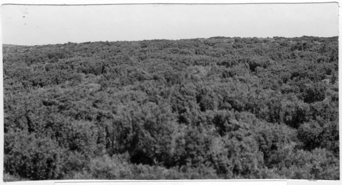 'Bildtext: ''Enbuskrik ljungmark.'' Vy över enbuskklädd mark. :: :: Fotonr. 7046:1-84 indelade som ''Landskapsbilder från Göteborgs- och Bohus län.'' Ingår i serie med fotonr. 7046:1-383, 7047:1-33 och 7048:1-67 med bilder från Länsjägmästare John Lindners bildarkiv.'