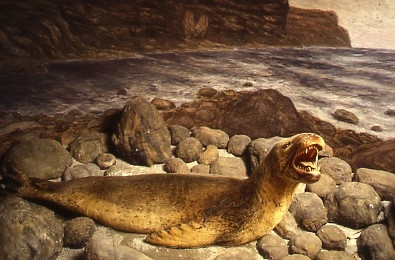 Basutställningen på Göteborgs Naturhistoriska Museum, diorama i valsalen, leopardsäl