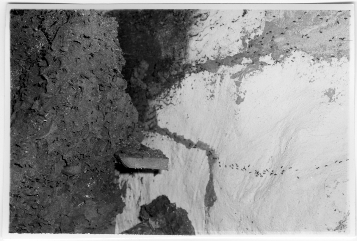 'Jättelikt bo av blanksvart trädmyra. Boet är ett pergamentsbo med storleken, 55 cm högt, bredd 55 cm, längd i horisontalplan 63 cm och vikt 6 kg. :: :: Ingår i serie med fotonr. 5086:1-9, se även fotonr. 4716-4729.'