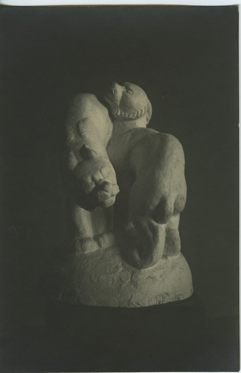 'Logrupp (i huggen granit). Skulptur av Richard Mäntynen. Höjd 43 cm pris 700 kr. :: :: Serie fotonr 972-982 av stiliserade djurskulpturer.'